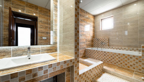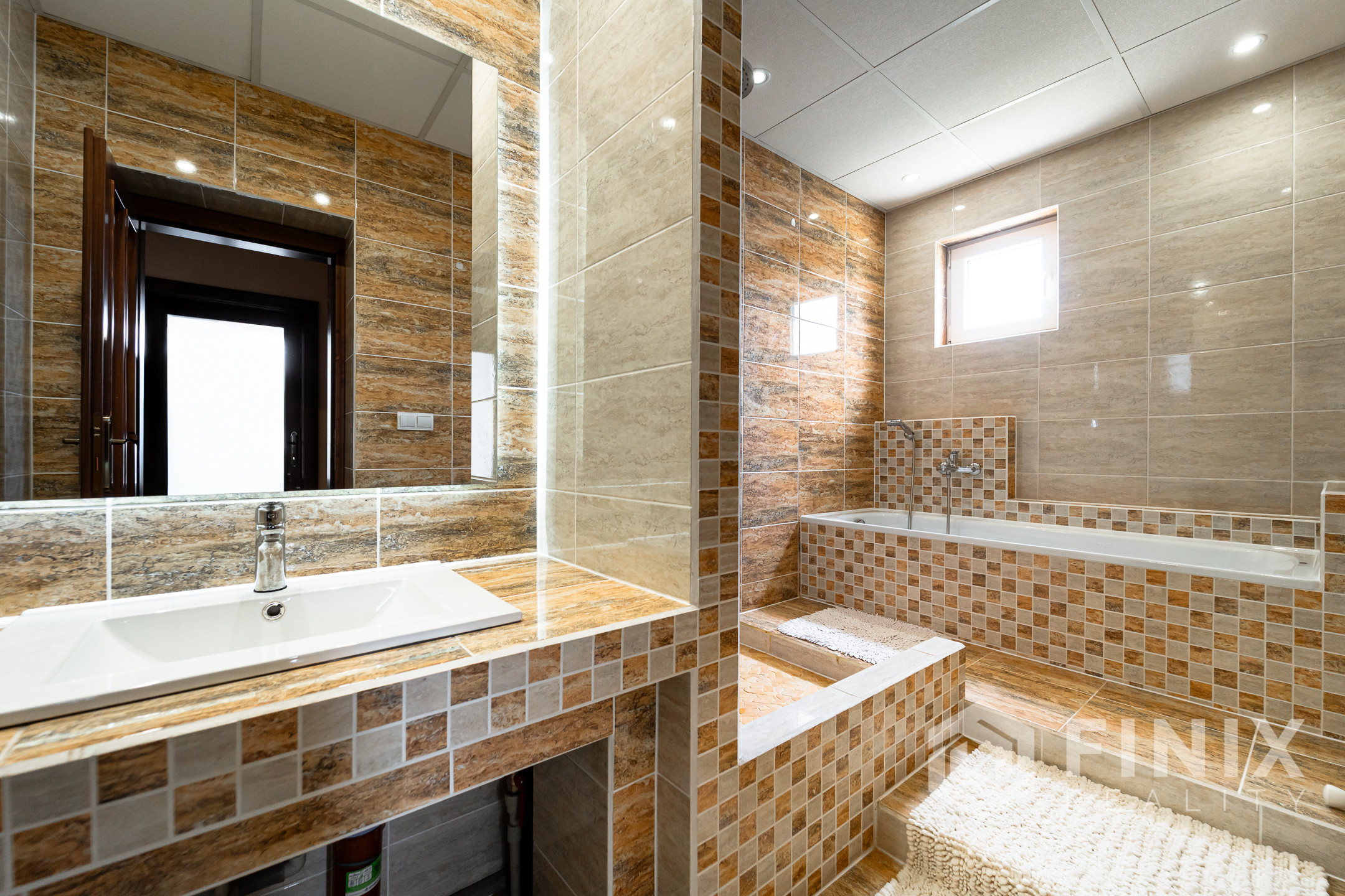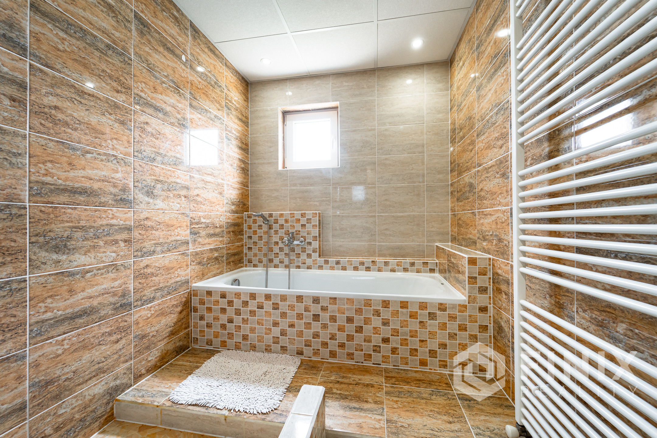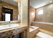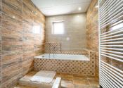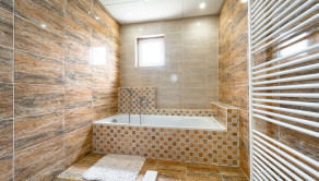 kúpeľňa s vaňou a sprchovacím kútom