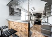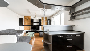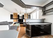 priestranná obývačka spojená s kuchyňou