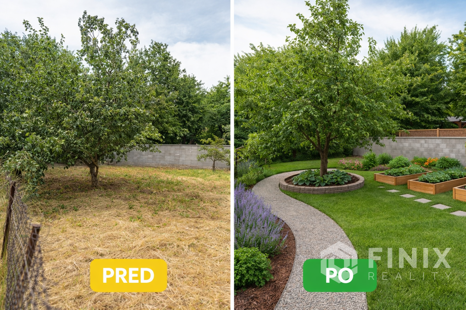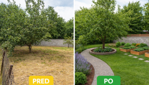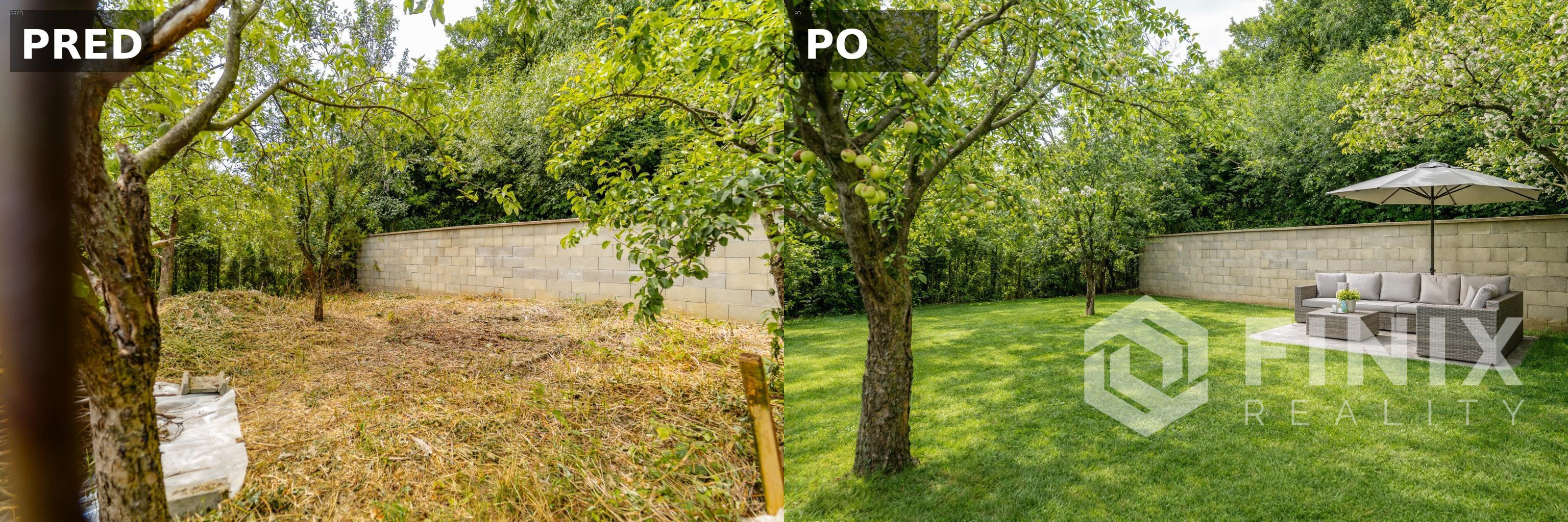 2 súkromné záhradky pri bytovom dome s výmerou 302 m² – ideálne na posedenie, grilovačku, záhradkárčenie, vyvýšené záhony, detské ihrisko či dokonca jacuzzi (pri fotkách aj dizajnový návrh)